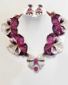 Соколовская Галина. Императрица (колье, серьги) — камни Swarovski, смешанные металлы, искусственные цветы