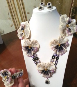 Соколовская Галина. Гармония (колье, серьги, браслет) — камни Swarovski, смешанные металлы, искусственные цветы
