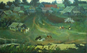 Куклин Сергей (1937-2003). Деревня Родники — холст, масло. 108х169, 1985.